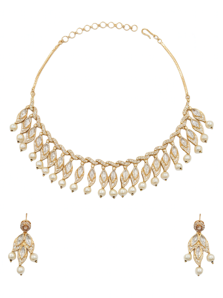 Swarna Jewellery Set is a radiant gold-plated Kundan and Polki set that exudes timeless elegance and luxurious charm. Named “Swarna,” meaning “gold” in Sanskrit, it perfectly captures the set’s rich golden hues and classic craftsmanship. This collection symbolizes prosperity, beauty, and versatility, making it an essential piece that complements every occasion and outfit with grace.